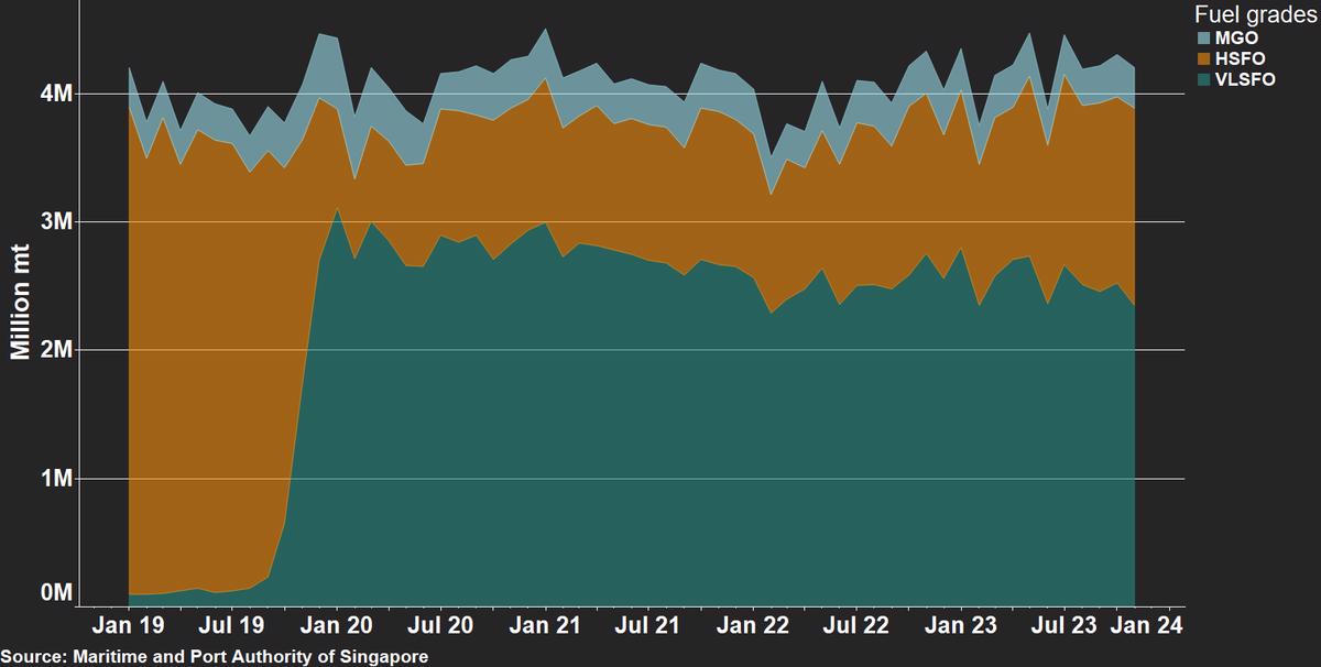 - HSFO sales up 91,000 mt to 1.54 million mt