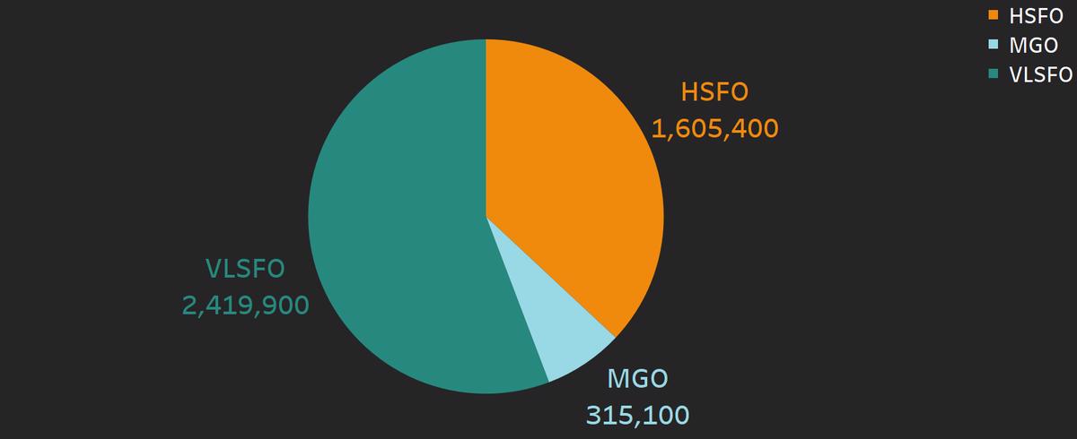 - VLSFO sales down 135,000 mt to 2.42 million mt