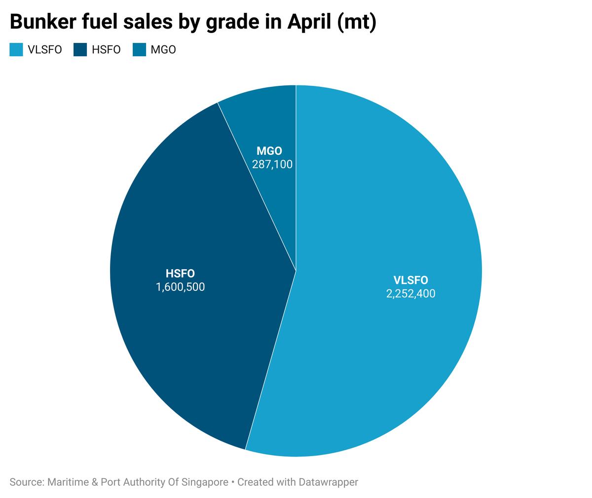 Singapore’s VLSFO sales fell by 7%, while total MGO sales declined 9%. On the other hand, HSFO sales in the port remained steady with March levels, according to preliminary figures from the Maritime and Port Authority of Singapore.