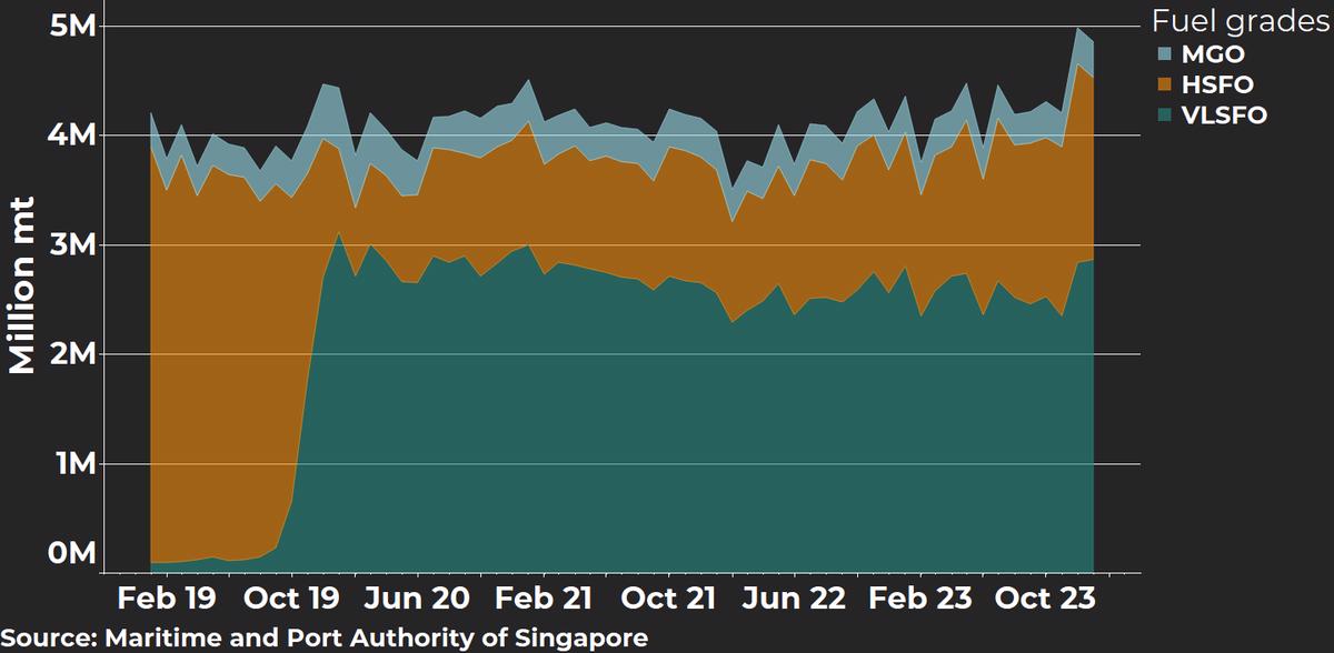 - HSFO sales down 152,000 mt to 1.66 million mt