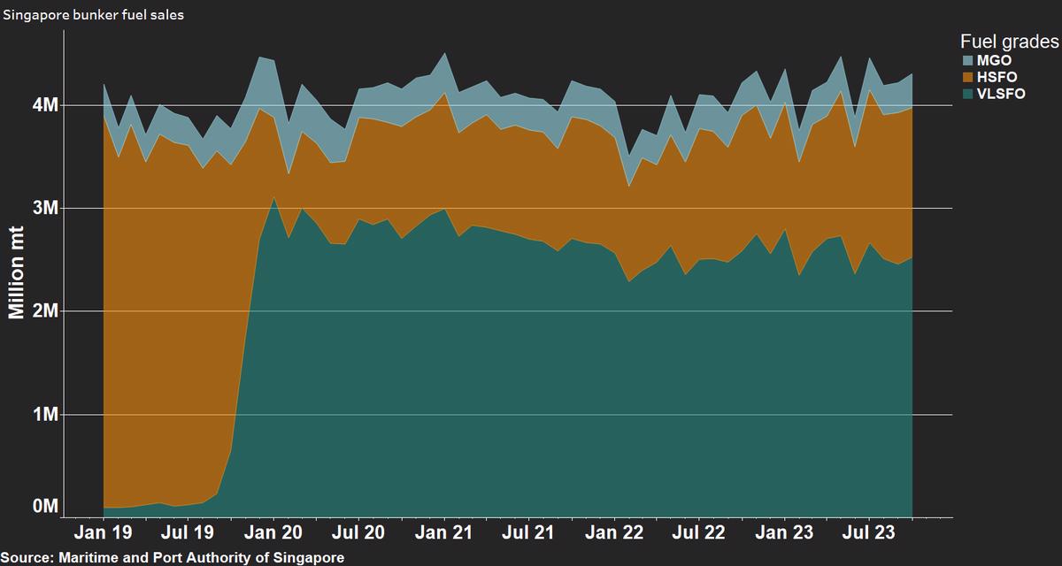 Singapore’s VLSFO and MGO sales grew by 3% and 17%, respectively, in October.
