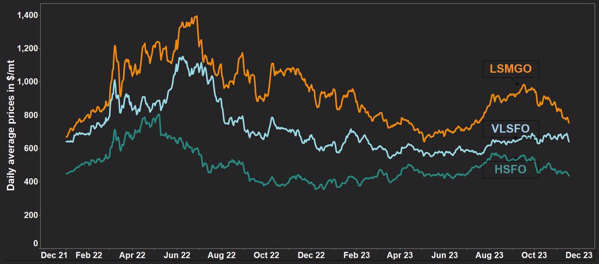 - HSFO up from 20-month low of $355/mt on 8 December