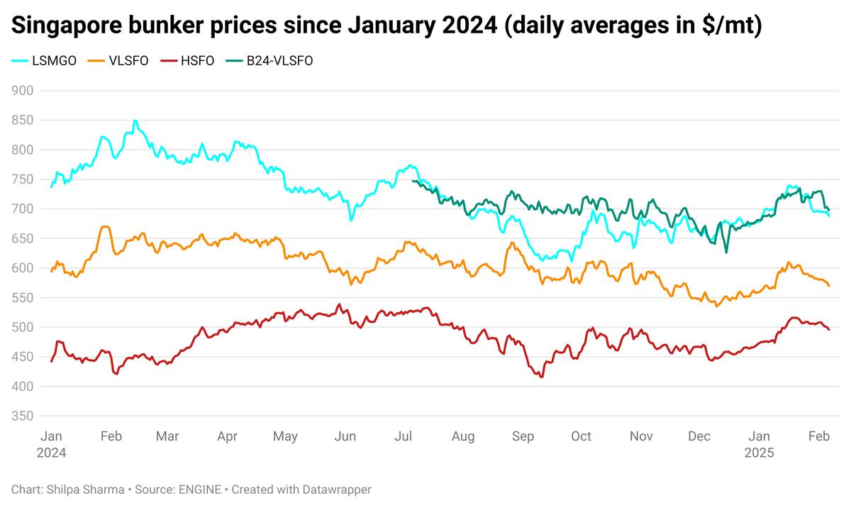 - B24-VLSFO price down $4/mt to $697/mt