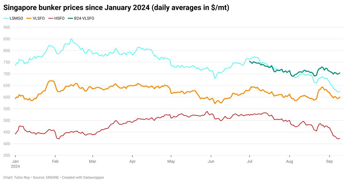 - B24-VLSFO price down $1/mt to $704/mt