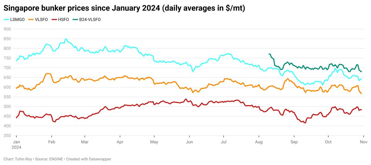 - B24-VLSFO lingers around its lowest level in almost a week