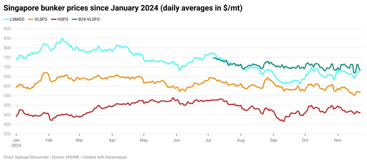 - B24-VLSFO surges to its highest level in the past few days