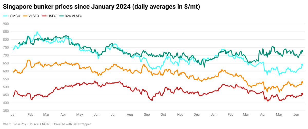 - B24-VLSFO price up $14/mt to $724/mt