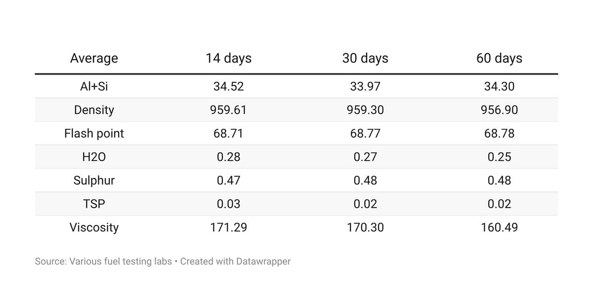 Typical VLSFO qualities in Singapore based on 447 fuel samples over the past 14 days.