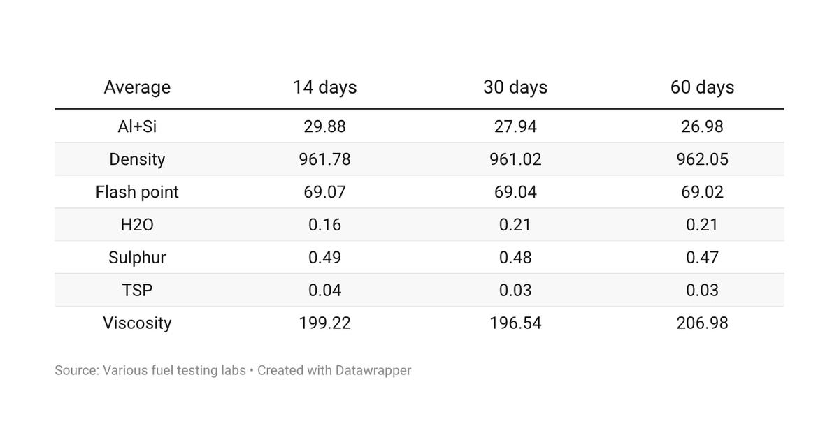 Typical VLSFO qualities in Singapore based on 472 fuel samples over the past 14 days.