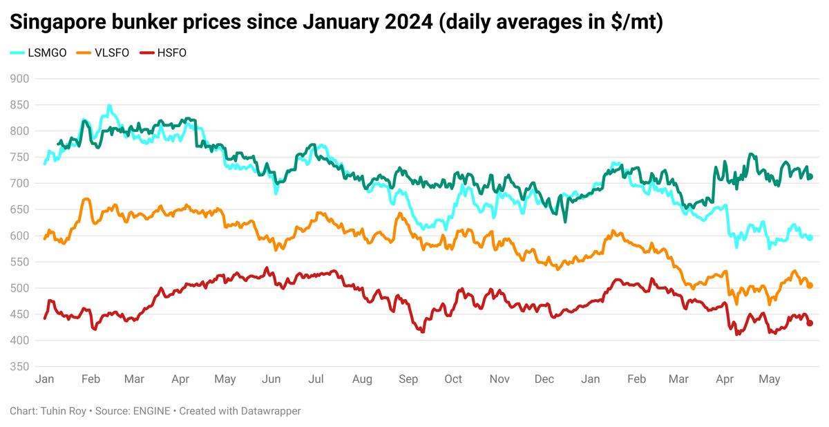 - VLSFO lingers arounds its lowest level in the past few weeks