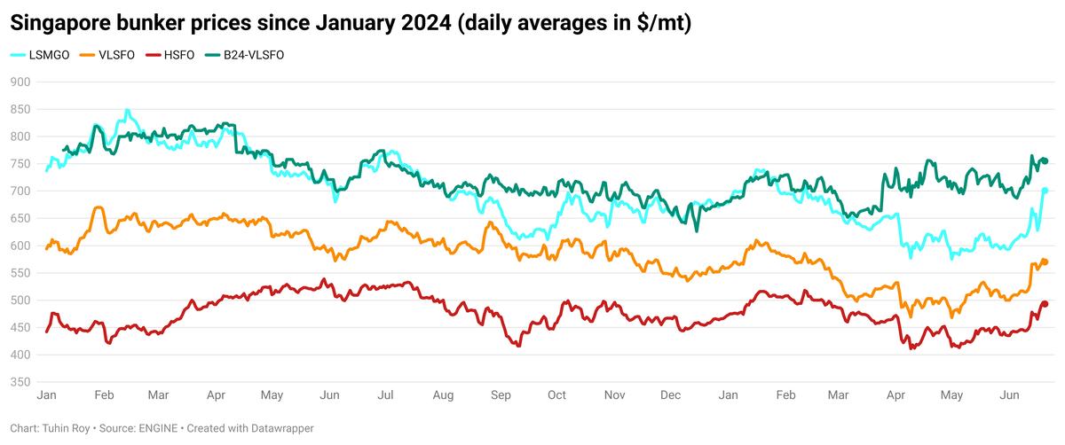 - B24-VLSFO price up $1/mt to $751/mt