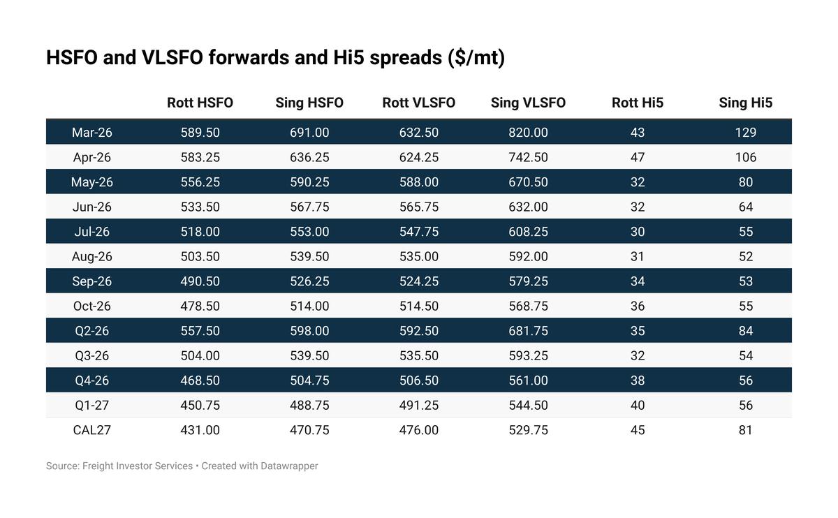 HSFO availability has also tightened, with lead times increasing to 11–15 days, from 8–11 days a week earlier.