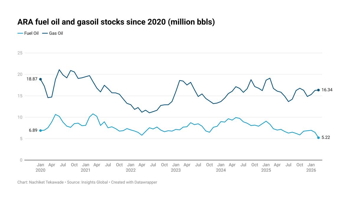 In contrast, Singapore’s middle distillate inventories have declined by 14% this month to 7.27 million bbls, reaching multi-year lows.