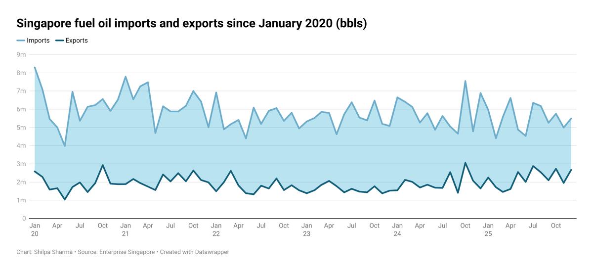 Singapore’s fuel oil stocks have climbed above 25 million bbls, reaching their highest level so far this year.