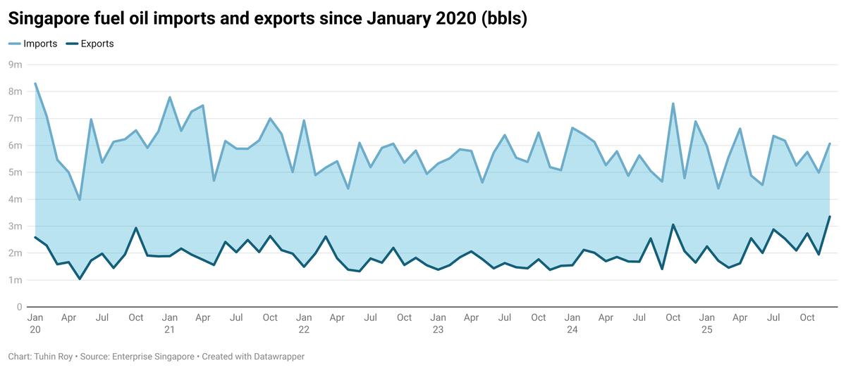 Singapore’s fuel oil stocks rise despite lower net imports
