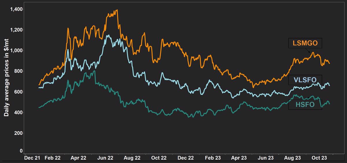 Singapore’s HSFO and VLSFO prices fall, LSMGO edges up