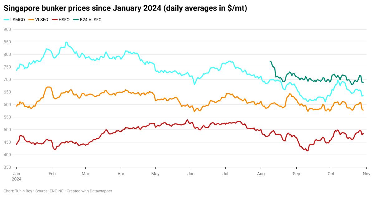 Singapore’s LSMGO and HSFO prices inch up, VLSFO and B24-VLSFO decline