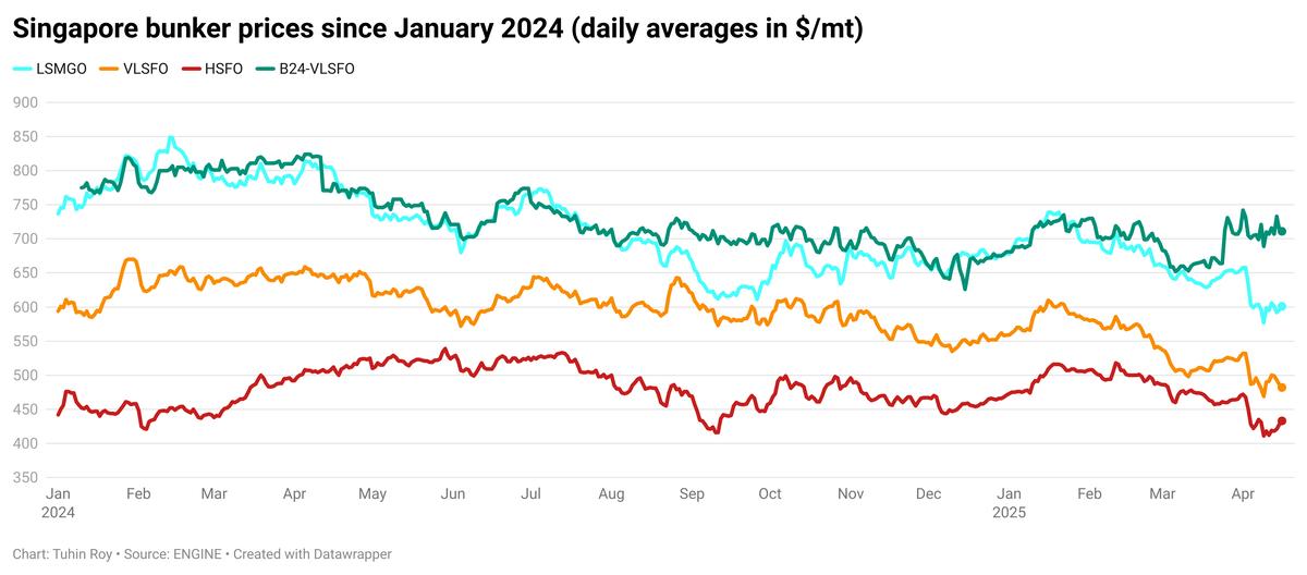 Singapore’s LSMGO and HSFO prices rise, VLSFO and B24-VLSFO fall