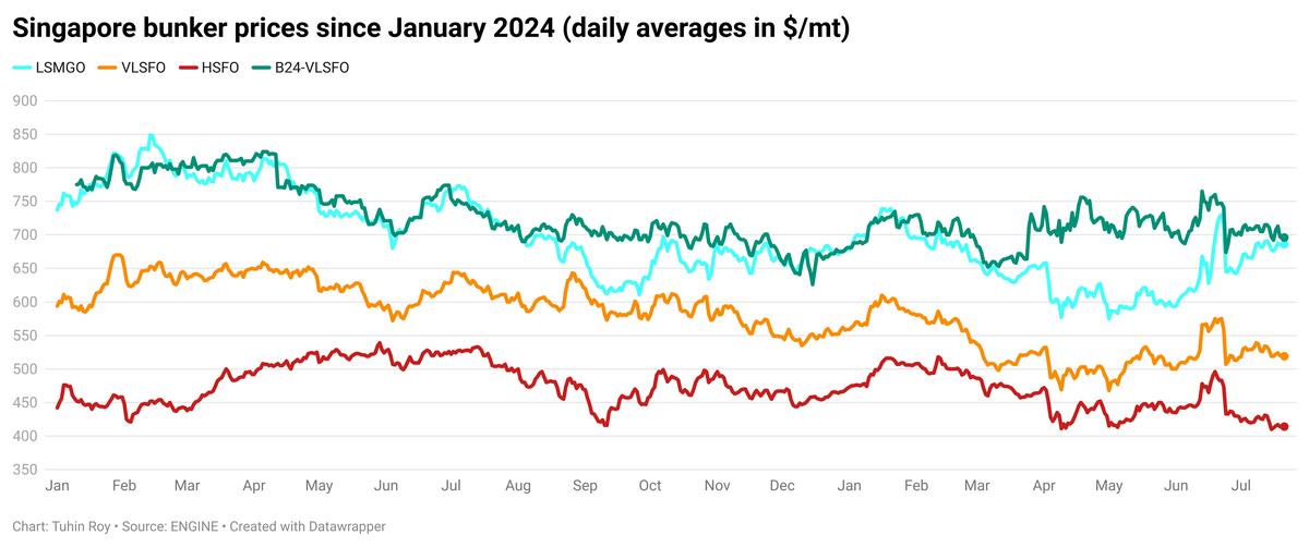- B24-VLSFO price down $22/mt to $696/mt