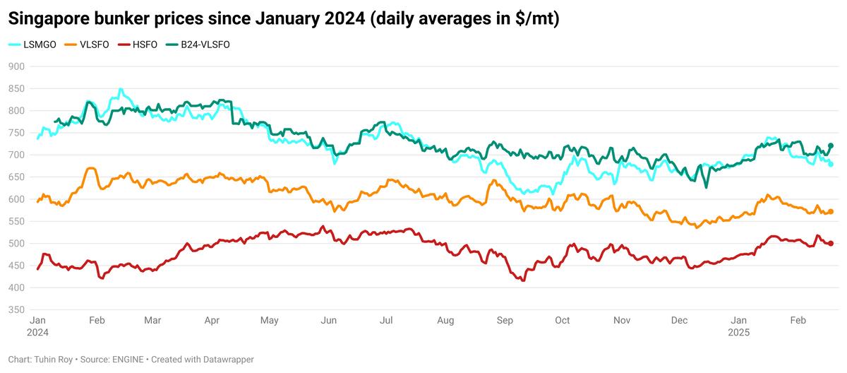 Singapore’s VLSFO and B24-VLSFO prices rise, LSMGO and HSFO fall
