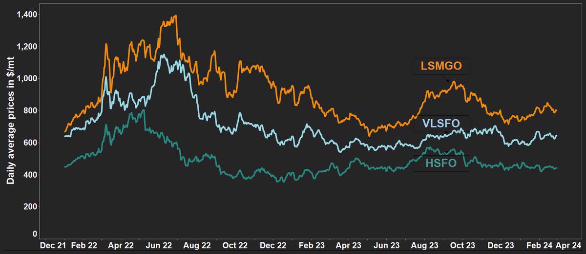 Singapore’s VLSFO and HSFO prices inch up, LSMGO dips some