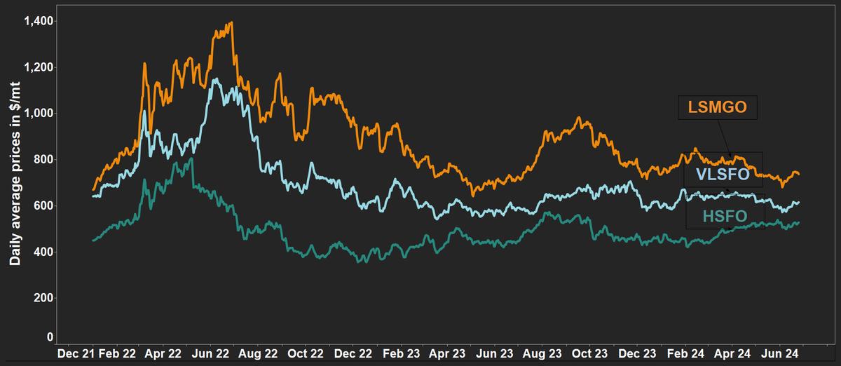 Singapore’s VLSFO and HSFO prices rise, LSMGO falls
