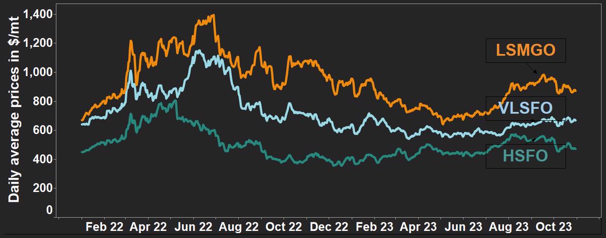 Singapore’s VLSFO and LSMGO prices rise over the weekend, HSFO dips