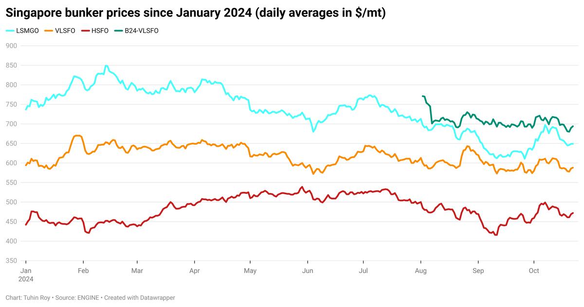 Singapore’s VLSFO, B24-VLSFO and HSFO prices rise, LSMGO steady