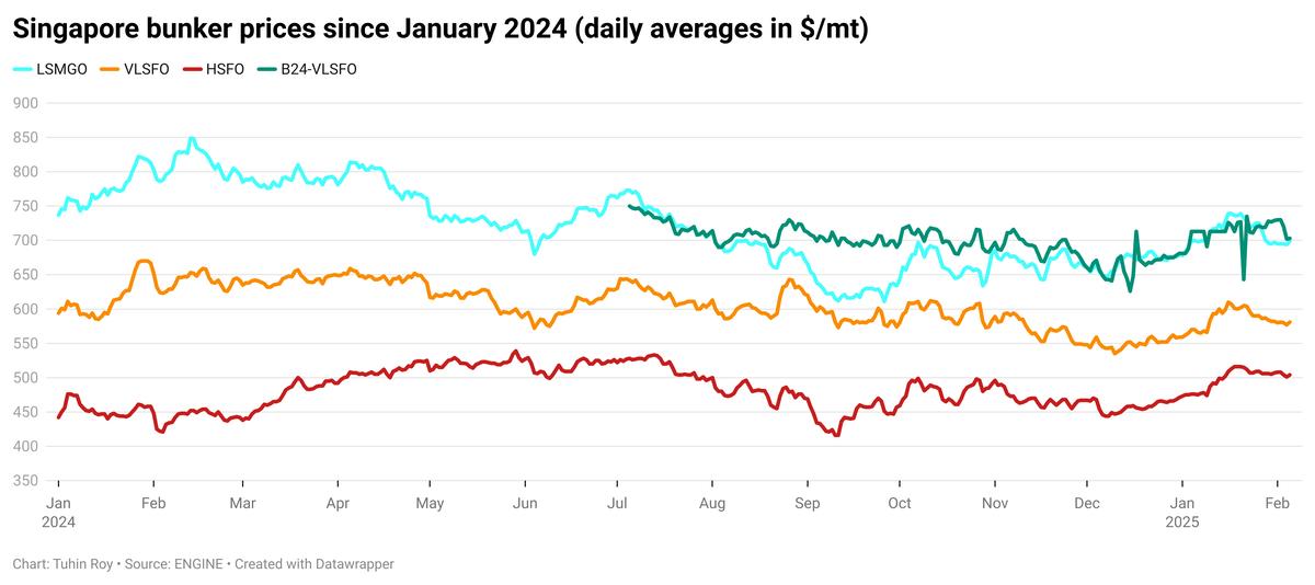 Singapore’s VLSFO, LSMGO and HSFO prices inch up, B24-VLSFO declines
