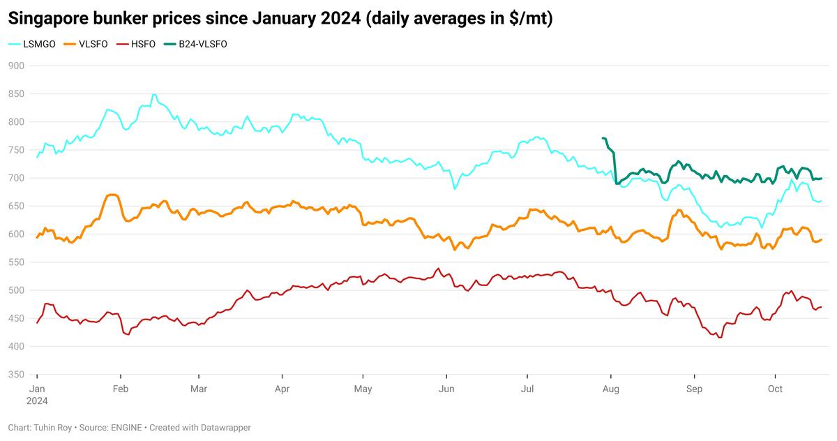 Singapore’s VLSFO, LSMGO and HSFO prices inch up, B24-VLSFO steady