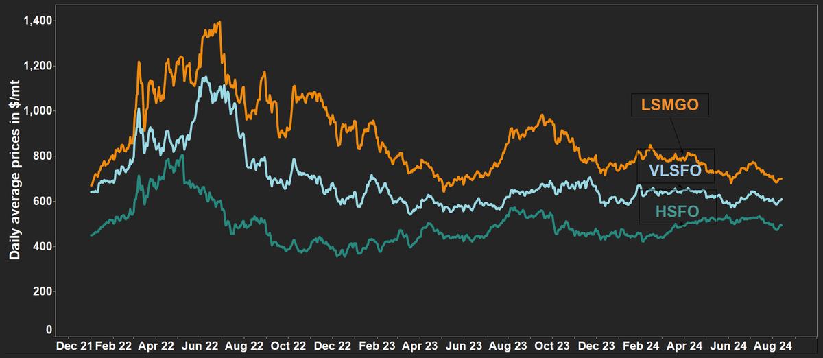 Singapore’s VLSFO price inches up, LSMGO and HSFO dip