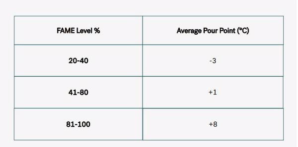 PHOTO: Pour point of MGO-FAME blends. Integr8 Fuels