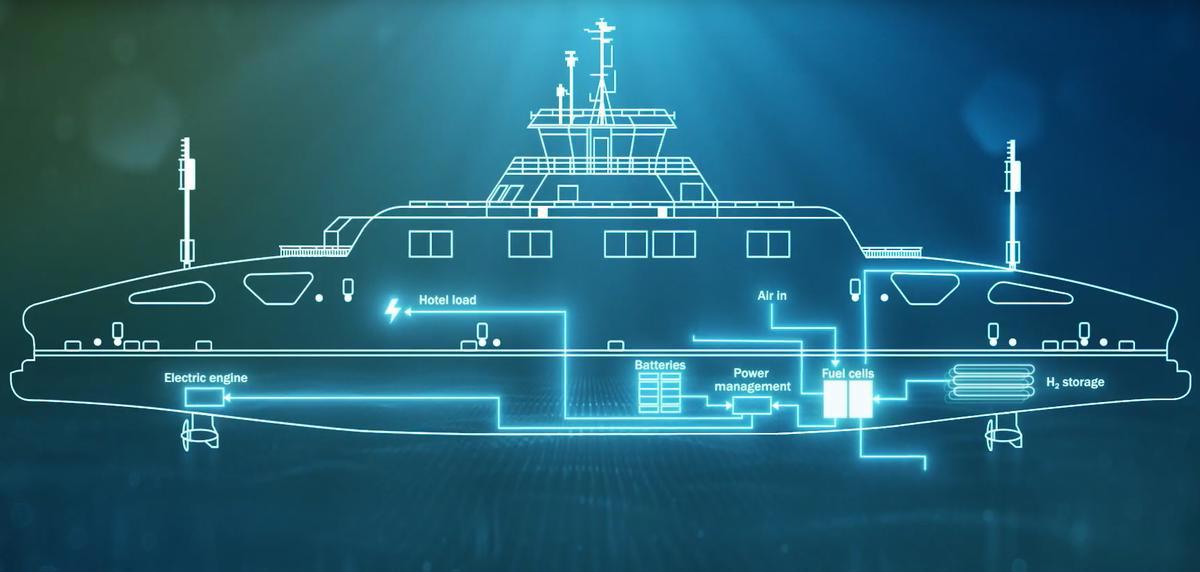 MODEL: Liquid hydrogen fuel cells installed on a ship. Ballard Power System