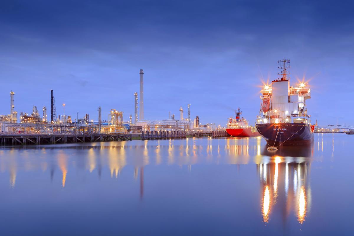 PHOTO: Tanker in Port of Rotterdam at night. Getty Images