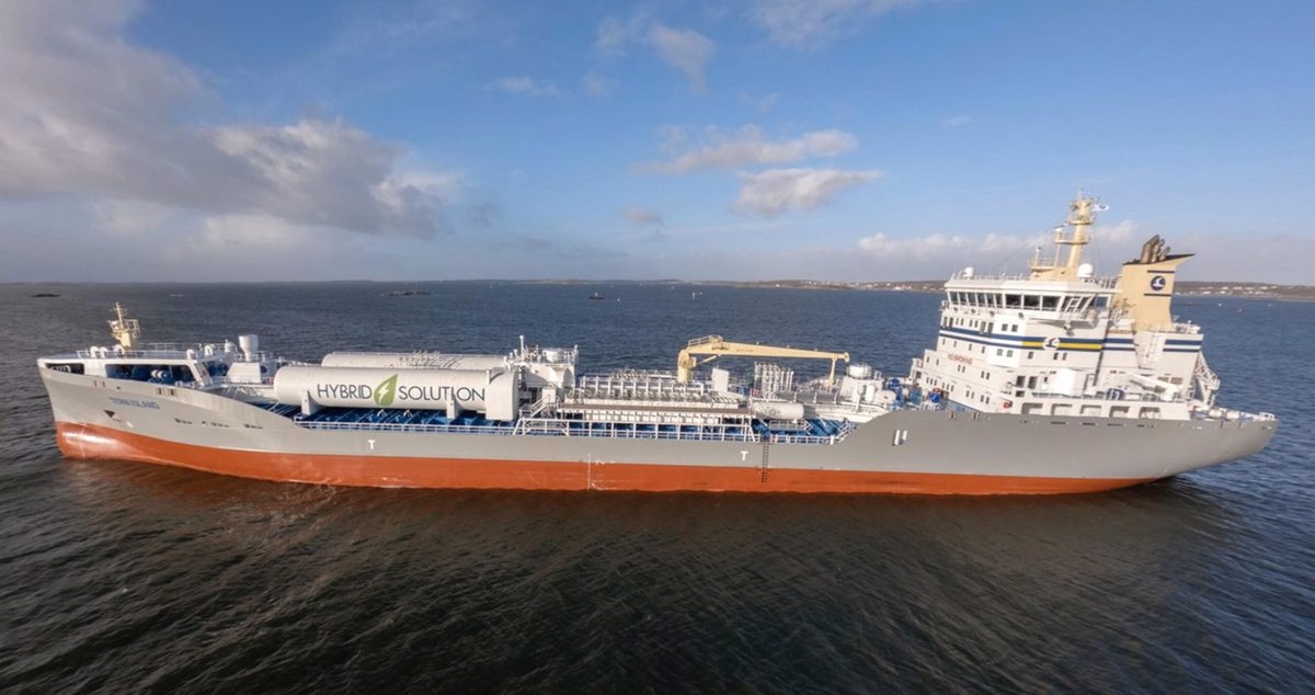 Tern Island, a 16,500 cbm hybrid tanker built by the Chinese Jingling Shipyard, can run on liquified biogas (LBG), LNG and electric power.