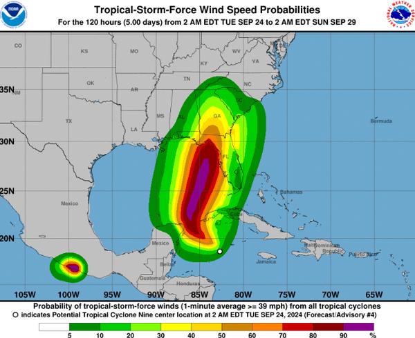 MAP: Projected wind speed of Tropical Storm Helene in the Gulf of Mexico. US National Hurricane Center