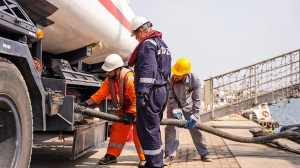 PHOTO: Biofuel blend being delivered to a tugboat using trucks in Sohar, Sohar Port and Freezone