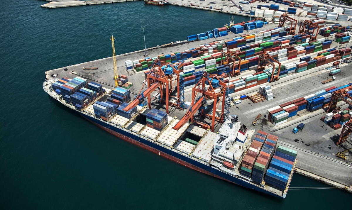 PHOTO: Aerial view of container ship moored in Istanbul port in Türkiye. Getty Images