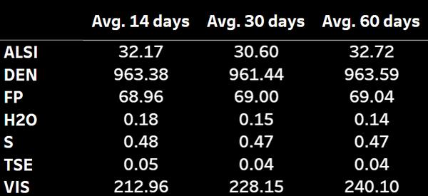Typical VLSFO qualities in ARA ports based on 110 fuel samples over the past 14 days.