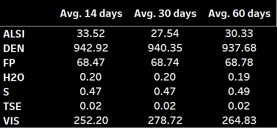 Typical VLSFO qualities in Fujairah based on 84 fuel samples over the past 14 days.