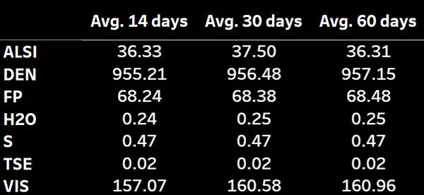 Typical VLSFO qualities in Singapore based on 497 fuel samples over the past 14 days.