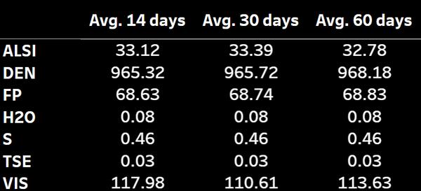 Typical VLSFO qualities in USGC locations based on 54 fuel samples over the past 14 days.
