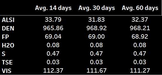 Typical VLSFO qualities in USGC locations based on 58 fuel samples over the past 14 days.