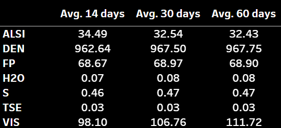 Typical VLSFO qualities in USGC locations based on 59 fuel samples over the past 14 days.