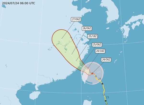 MAP: The projected path of Typhoon Gaemi as of Wednesday. CWA
