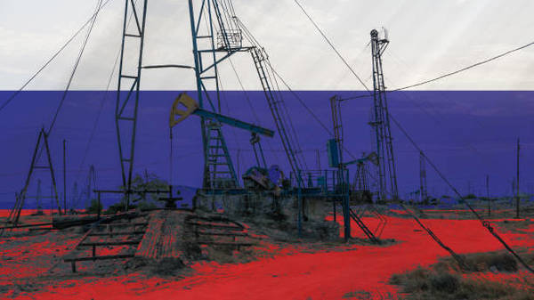 PHOTO: Oil pumps with the Russian flag in the background. Getty Images