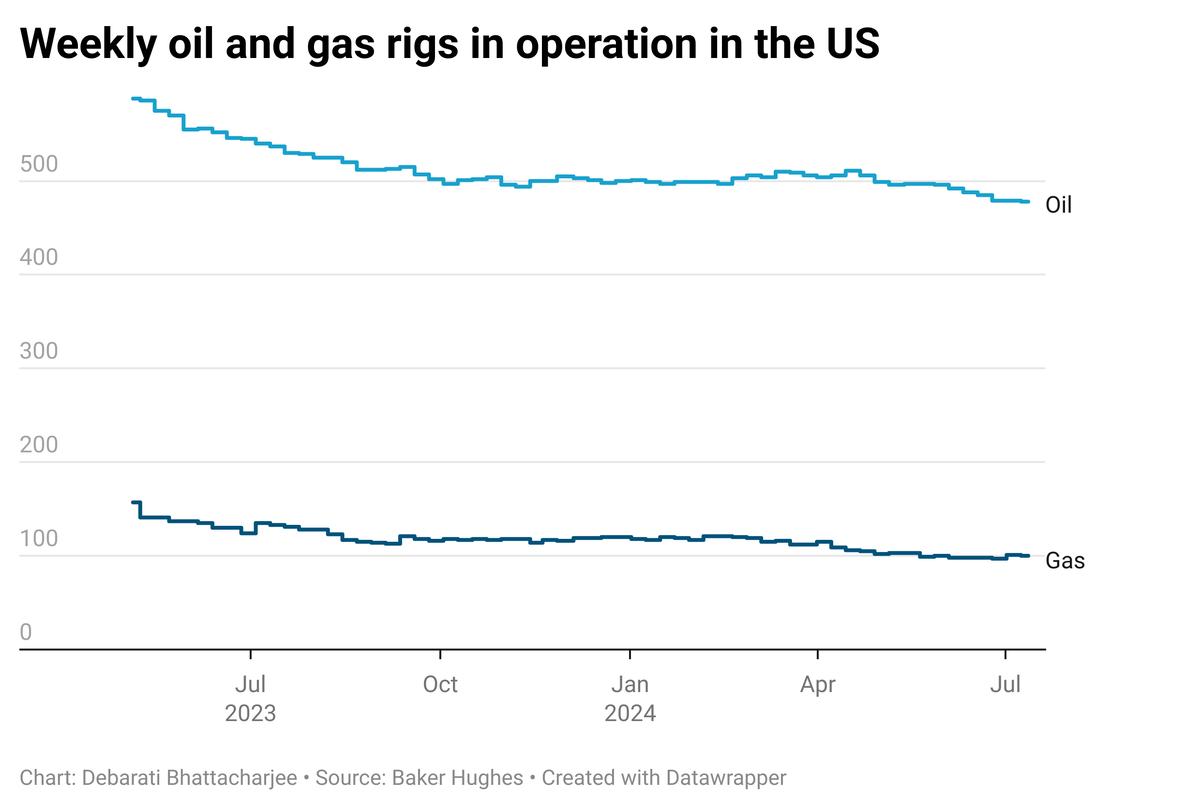 The number of oil rigs fell by one to 478, to their lowest level since December 2021. The natural gas rig count also fell by one to 100. There were also six miscellaneous rigs in operation, one more than the previous week.