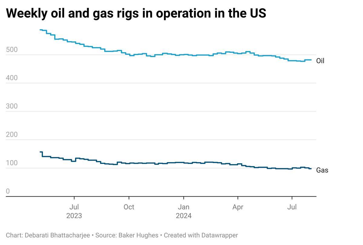 The total US oil and gas rig count was down by 73, or 11% from a year earlier.