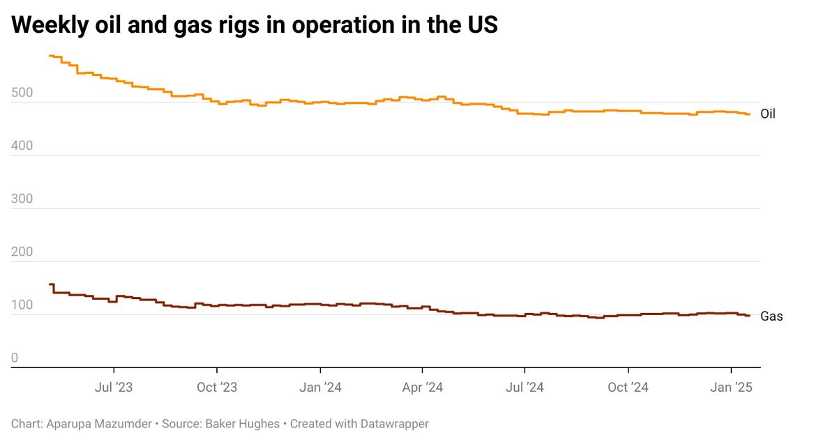 The total number of US oil and gas rigs was down by 40, or 6.5% from a year earlier.