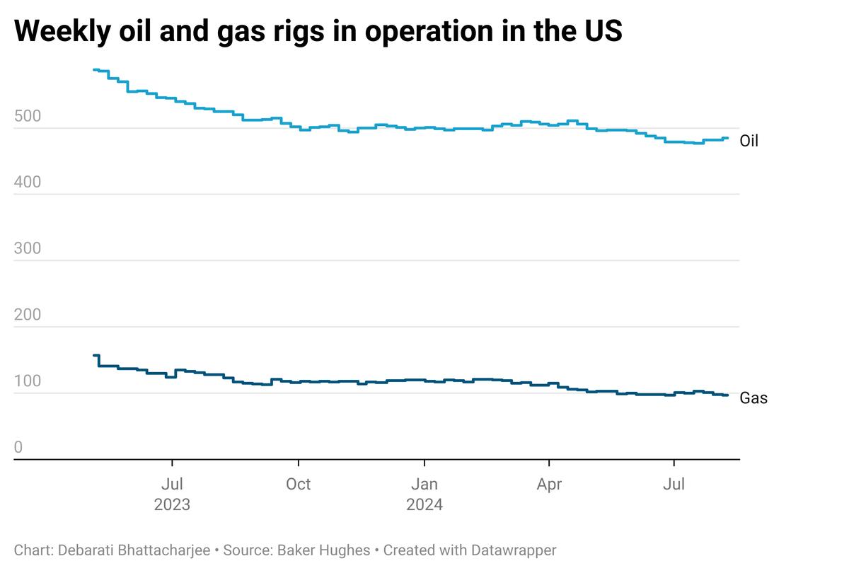 The total US oil and gas rig count was down by 66 rigs, or 10% from a year earlier.